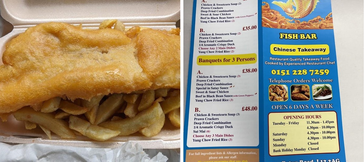 My go to chippies in West Derby have changed hands so I decided to try this one. You can see all the staff working in view. Nothing going on out of sight. We got small fish and chips with peas and Sweet and sour King prawn with fried rice. Everything was cooked to order, took 10 to 15 mins to be ready. The staff were very polite and attentive. We both enjoyed the food and we will definitely use this shop as our first choice chippy in future.