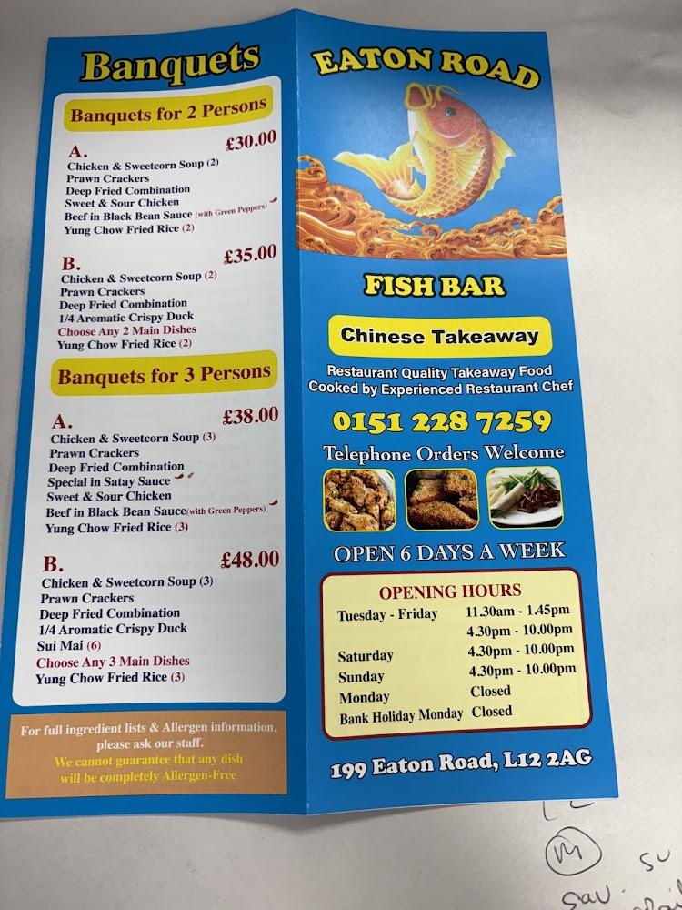 Eaton Road Fish Bar is a beloved establishment in Liverpool’s West Derby area, located at 199 Eaton Rd, Liverpool L12 2AG. This fish and chip shop has been a staple of the community for nearly 50 years, drawing in regulars with its comforting dishes and welcoming atmosphere. The location is easily accessible, featuring a wheelchair-accessible entrance and seating, ensuring everyone can enjoy a meal here. With phone orders available at +44 151 228 7259, convenience is key for busy customers looking to grab a quick bite. The restaurant's casual feel paired with attentive service creates an inviting dining experience that encourages repeat visits. Many choose this place for lunch or dinner, especially for its generous portions and late-night offerings, making Eaton Road Fish Bar a popular stop for both locals and visitors alike.